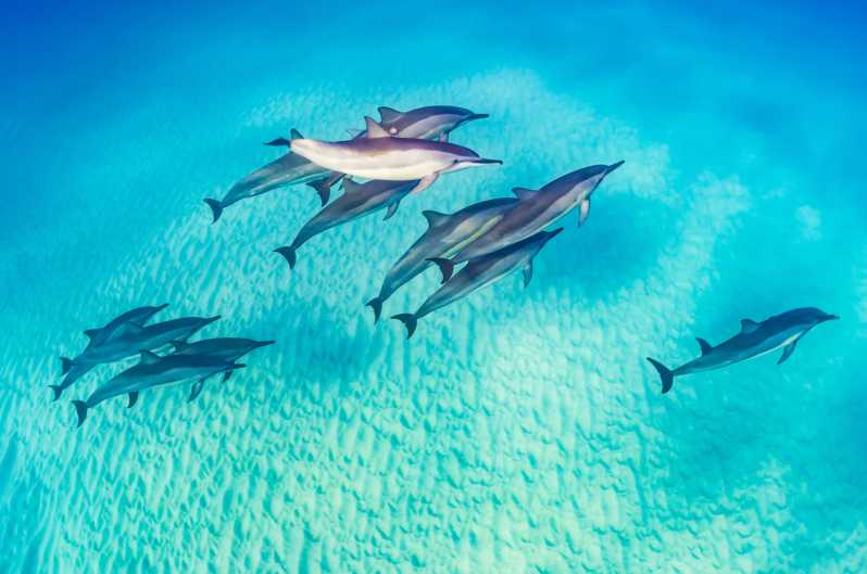 Dolphin spotting and snorkelling in the Red Sea is a highlight because of its crystal clear waters, which offer stunning views of colourful coral reefs and diverse marine life. Perhaps being able to swim with wild dolphins in their natural habitat is an unforgettable experience.